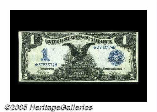 <B>Fr. 232 $1 1899 Silver Star Certificate Very Choice New.</B></I> Natural paper wave, bold embossing and nice margins cage this delightful Black Eagle replacement.<BR><I>From the collection of Richard Merlau.</B></I>