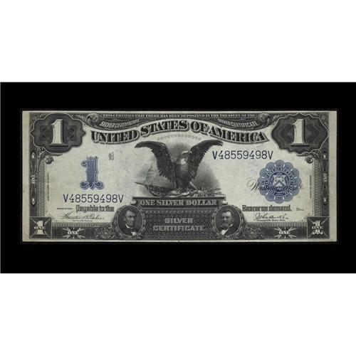 <B>Fr. 233 $1 1899 Silver Certificate About New.</B></I> Original embossing can be seen on this center-folded, lightly aged Black Eagle.