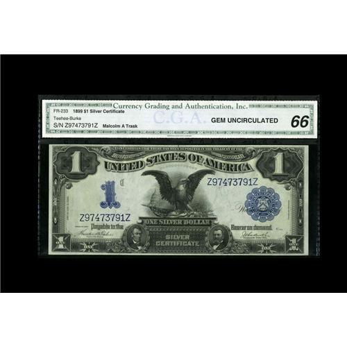 Fr. 233 $1 1899 Silver Certificate CGA Gem 66 Fr. 233 $1 1899 Silver Certificate CGA Gem Uncirculate