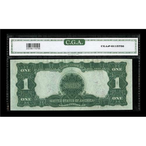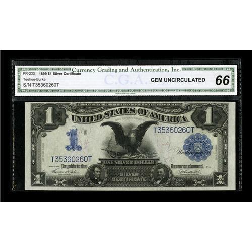 <B>Fr. 233 $1 1899 Silver Certificate CGA Gem Uncirculated 66.</B></I> The left end of the top margin seems a bit close for the 66 grade, but this note seems extremely nice in every other sense.<BR><BR><b>Shipping:</b> Coins & Currency (<a target="_blank" href="http://www.heritageauctions.com/common/shipping.php">view shipping information</a>)