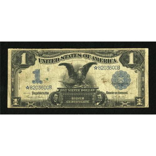 <B>Fr. 233 $1 1899 Silver Certificate Star Good-Very Good.</B></I> A bit of margin roughness is noticed as well as a couple pinholes.<BR><BR><b>Shipping:</b> Coins & Currency (<a target="_blank" href="http://www.heritageauctions.com/common/shipping.php">view shipping information</a>)