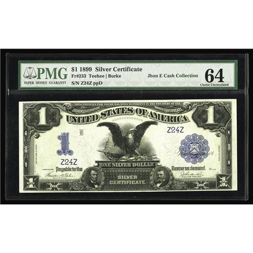 <B>Fr. 233 $1 1899 Silver Certificate PMG Choice Uncirculated 64.</B></I> Here is yet another stunning low digit note. This time serial number Z24Z graces this Black Eagle.