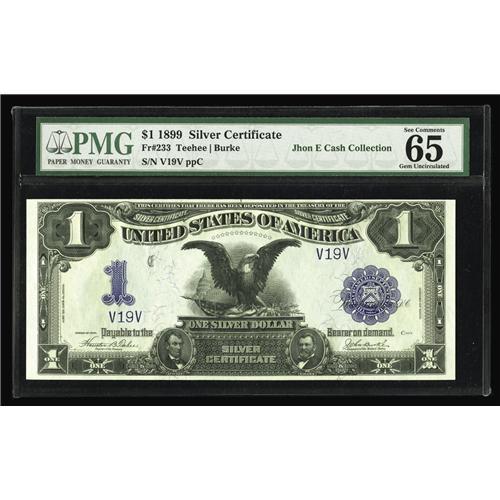 <B>Fr. 233 $1 1899 Silver Certificate PMG Gem Uncirculated 65.</B></I> This example carries serial number V19V. Seeing these all together makes one wonder if these were ever presentation pieces.