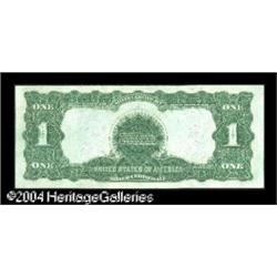 Fr. 233 $1 1899 Silver Certificate Superb Gem New. Broa <B>Fr. 233 $1 1899 Silver Certificate Superb Gem New.</B></I> Broad, even margins, deep, original embossing and spectacular eye appeal all combine on this serial-number 400 Black Eagle. <BR><BR><B>Important notice:</B> Heritage usually auctions material at the rate of 200-250 lots per hour. On some occasions eBay Live bid software or the Internet may not be able to keep up with the pace of the auction. We recommend placing a realistic absentee bid now as insurance to avoid disappointment. Occasionally the auctioneer may eliminate or reject an eBay Live bid, and the auctioneer may also reopen a lot after the close of the eBay live bidding (usually because we missed an audience bid), and may reject your bid even if it shows you as the winning bidder. By bidding via eBay Live, you agree that Heritage may award the lot to another bidder at its sole discretion under the circumstances described above or any other reasonable circumstances. Since eBay bids are not shown to us until we open the lot on the floor, we treat those bids just like floor bids. In most cases the floor responds before the eBay bid is presented to us, due to Internet lag time, so for consistency we have made it a policy that floor bids are always considered first over tie eBay live bids. Also please note that all Heritage lots purchased through eBay Live carry a 20% Buyer's Premium. Please make sure you read the Terms and Conditions before you bid. This lot is being auctioned in conjunction with a live floor auction by Heritage Galleries & Auctioneers. All final auction and invoice information will be supplied by Heritage Galleries & Auctioneers, and all other information should be considered preliminary. Lot:17175