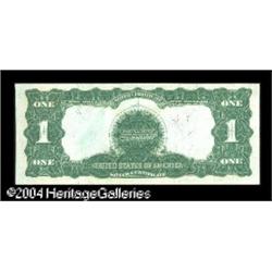 Fr. 233 $1 1899 Silver Certificate Very Choice New. The <B>Fr. 233 $1 1899 Silver Certificate Very Choice New.</B></I> The top margin is a bit tight at the left on this three-digit Eagle Ace, but the embossing is beautifully deep, and the colors remain strong. <BR><BR><B>Important notice:</B> Heritage usually auctions material at the rate of 200-250 lots per hour. On some occasions eBay Live bid software or the Internet may not be able to keep up with the pace of the auction. We recommend placing a realistic absentee bid now as insurance to avoid disappointment. Occasionally the auctioneer may eliminate or reject an eBay Live bid, and the auctioneer may also reopen a lot after the close of the eBay live bidding (usually because we missed an audience bid), and may reject your bid even if it shows you as the winning bidder. By bidding via eBay Live, you agree that Heritage may award the lot to another bidder at its sole discretion under the circumstances described above or any other reasonable circumstances. Since eBay bids are not shown to us until we open the lot on the floor, we treat those bids just like floor bids. In most cases the floor responds before the eBay bid is presented to us, due to Internet lag time, so for consistency we have made it a policy that floor bids are always considered first over tie eBay live bids. Also please note that all Heritage lots purchased through eBay Live carry a 20% Buyer's Premium. Please make sure you read the Terms and Conditions before you bid. This lot is being auctioned in conjunction with a live floor auction by Heritage Galleries & Auctioneers. All final auction and invoice information will be supplied by Heritage Galleries & Auctioneers, and all other information should be considered preliminary. Lot:17232