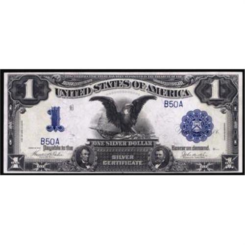 <style type="text/css"> body, td, th { font-family: Arial, Helvetica, sans-serif; font-size: 12px; color: #482424; margin: 0px; padding: 0px; } #header { background-image: url(http://www.bowersandmerena.com/ebay/images/template_v3_01.gif); clear: both; background-color: #590303; border-top-width: 2px; border-top-style: solid; border-top-color: #B38C4F;}#header #header_wrapper { height: 75px; clear: both; width: 800px; margin-right: auto; margin-left: auto; background-image: url(http://www.bowersandmerena.com/ebay/images/template_v3_03.gif); background-repeat: no-repeat; background-position: right; color: #F3EDCC;}#header #header_wrapper #header_logo { float: left; height: 75px; width: 444px; background-image: url(http://www.bowersandmerena.com/ebay/images/template_v3_02.gif); background-repeat: no-repeat; font-size: 10px; text-transform: capitalize; color: #B38C4F;}#header #header_wrapper #header_right { float: left; height: 75px; width: 356px; text-align: right;}#header #header_wrapper #header_right #headerLoginBtn { margin-bottom: 30px;}#header #header_wrapper #header_right input#txtSearch { color: #B49056; border: 1px solid #B49056; width: 175px; padding-top: 3px; padding-right: 3px; padding-bottom: 4px; padding-left: 3px;}#nav { height: 37px; background-image: url(http://www.bowersandmerena.com/ebay/images/template_v3_05.gif); clear: both;}#nav #nav_wrapper { height: 35px; width: 800px; margin-right: auto; margin-left: auto; border-left-width: 1px; border-left-style: solid; border-left-color: #B38C4F;}#nav #nav_wrapper a { padding-right: 15px; padding-left: 15px; border-right-width: 1px; border-right-style: solid; border-right-color: #B38C4F; height: 25px; padding-top: 10px; display: block; float: left; text-decoration: none; font-weight: bold; color: #5D0303;}#nav #nav_wrapper a:hover { color: #B38C4F;}#nav #nav_wrapper #search { float: right; padding-top: 7px;}#nav #nav_wrapper #search #txtSearch { font-family: Arial, Helvetica, sans-serif; font-size: 10px; text-transform: uppercase; color: #D2AE75; border: 1px solid #B38C4F; padding: 3px;}#content_bgd { background-image: url(http://www.bowersandmerena.com/ebay/images/template_v3_09.gif); background-repeat: repeat-y; background-position: center; padding-top: 15px; padding-bottom: 15px; background-color: #FBFBDB;}#content_wrapper { clear: both; height: auto; width: 800px; margin-right: auto; margin-left: auto;}.LotDetailWhite{ line-height:normal; font-size:13px; font-family: arial,helvetica,sans-serif; color: White; font-weight: bold;}.LotDetailInformation{ line-height:normal; font-size: 13px; font-family: arial,helvetica,sans-serif;}.LotDetailMessage{ line-height:normal; font-size: 13px; font-family: arial,helvetica,sans-serif; color: red;}}tr.HeaderAuctionTitle td { color: #000000; font-weight: bold; padding: 2px; background-image: url(http://www.bowersandmerena.com/ebay/images/template_v3_05.gif); background-repeat: repeat-x; border-bottom-width: 1px; border-bottom-style: solid; border-bottom-color: #B38C4F;}table.AuctionSummary a, table.AuctionSummary a:link, table.AuctionSummary a:visited { color: #0000FF; text-decoration: none;}}td.tableHeaderLeft { border-left-width: 1px; border-left-style: solid; border-left-color: #B38C4F;}td.tableHeaderRight { border-right-width: 1px; border-right-style: solid; border-right-color: #B38C4F;}td.tableCellMiddle { border-left-width: 1px; border-left-style: solid; border-left-color: #B38C4F; border-right-width: 1px; border-right-style: solid; border-right-color: #B38C4F; padding: 5px;}tr.footer td { border-top-width: 1px; border-top-style: solid; border-top-color: #B38C4F;}</style></head><body><div id="header"> <div id="header_wrapper"> <div id="header_logo"> </div> <div id="header_right"> </div> </div></div><div id="nav"> <div id="nav_wrapper"> <a href="http://www.bowersandmerena.com">Our eBayLive Auctions</a> <a href="#PaymentInfo">Payment Information</a> <a href="#ShippingInfo">Shipping Information</a> <a href="#About">About Bowers and Merena</a> </div></div><div id="content_bgd"> <div id="content_wrapper"> <table width="100%" border="0" cellpadding="5" cellspacing="0" class="AuctionSummary"> <tbody> <tr class="HeaderAuctionTitle" style="height: 25px;"> <td align="left" class="tableHeaderLeft" > </td> <td align="center" class="tableHeaderRight"> <span style="font-size: large;">Lot #63. Fr. 233. 1899 $1 Silver Certificate. PMG Choice Uncirculated 64EPQ.</span> </td> </tr> <tr> <td colspan="3" class="tableCellMiddle"> A bright blue overprinted two-digit Black Eagle in a great Choice Uncirculated grade. The note has phenomenal black primary inks which make a stunning contrast to the blue serial number B50A. Est. $750 - $1,250