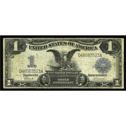 <B>Fr. 234 $1 1899 Silver Certificate Very Good.</B></I> This Friedberg number is one of the scarcer invert varieties known on Black Eagles. The note is complete with several pinholes. Sullivan only lists two known examples. This would make the third in about the same grade.