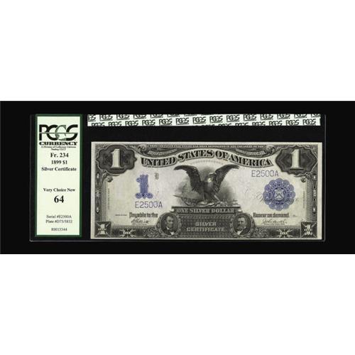 <B>Fr. 234 $1 1899 Silver Certificate PCGS Very Choice New 64.</B></I> Even serial number 2500 adorns this bright, well colored beauty.
