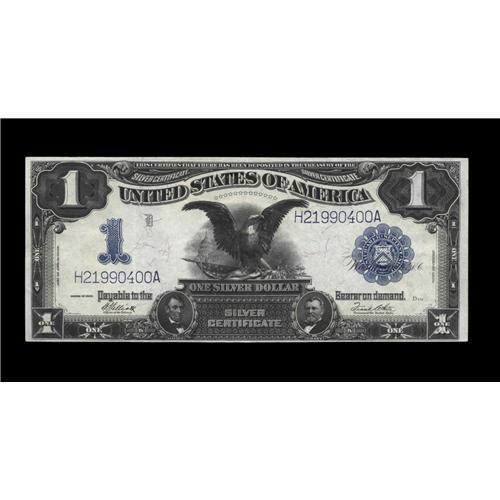 <B>Fr. 235 $1 1899 Silver Certificate Extremely Fine.</B></I> This Black Eagle invert which is documented exhibits three light vertical folds and possesses raised embossing.