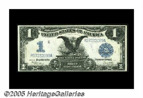 <B>Fr. 236 $1 1899 Silver Certificate Extremely Fine.</B></I> A vibrantly fresh Black Eagle with all the virginal originality of a Gem. Three light folds keep it from a higher classification and provide evidence of its unmolested status. The kind of note that often sells for a price in advance of what its technical grade would imply and likely will tonight.