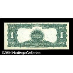 Fr. 236 $1 1899 Silver Certificate Gem New. Deep, o <B>Fr. 236 $1 1899 Silver Certificate Gem New.</B></I> Deep, original embossing and a two-digit serial number are both features of this well margined final Friedberg number of the 1899 Ones. This serial number, X27A, is the first of two identical consecutive examples. <BR><I>From the collection of Malcolm A. Trask.</B></I> <BR><BR><B>Important notice:</B> Heritage usually auctions material at the rate of 200-250 lots per hour. On some occasions eBay Live bid software or the Internet may not be able to keep up with the pace of the auction. We recommend placing a realistic absentee bid now as insurance to avoid disappointment. Occasionally the auctioneer may eliminate or reject an eBay Live bid, and the auctioneer may also reopen a lot after the close of the eBay live bidding (usually because we missed an audience bid), and may reject your bid even if it shows you as the winning bidder. By bidding via eBay Live, you agree that Heritage may award the lot to another bidder at its sole discretion under the circumstances described above or any other reasonable circumstances. Since eBay bids are not shown to us until we open the lot on the floor, we treat those bids just like floor bids. In most cases the floor responds before the eBay bid is presented to us, due to Internet lag time, so for consistency we have made it a policy that floor bids are always considered first over tie eBay live bids. Also please note that all Heritage lots purchased through eBay Live carry a 20% Buyer's Premium. Please make sure you read the Terms and Conditions before you bid. This lot is being auctioned in conjunction with a live floor auction by Heritage Galleries & Auctioneers. All final auction and invoice information will be supplied by Heritage Galleries & Auctioneers, and all other information should be considered preliminary. Lot:17264