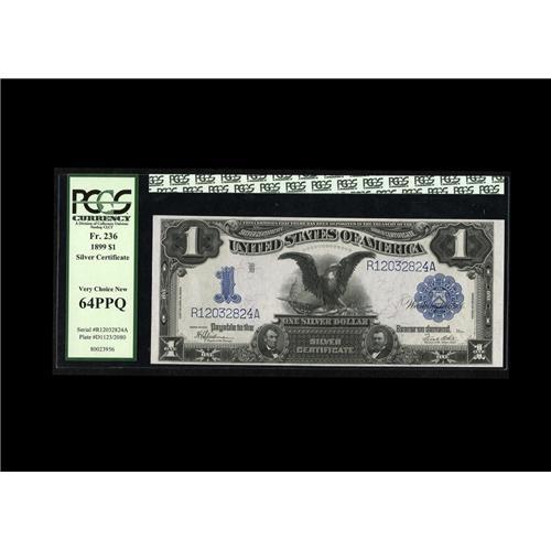 <B>Fr. 236 $1 1899 Silver Certificate PCGS Very Choice New 64PPQ.</B></I> This Black Eagle is just a whisper away from being declared a full fledge Gem.