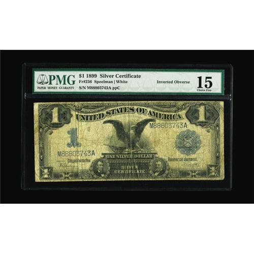 <B>Fr. 236 $1 1899 Silver Certificate PMG Choice Fine 15.</B></I> From our 2003 Central States sale where it was described, "A mere four inverts are on the record for this number."
