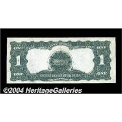Fr. 236 $1 1899 Silver Certificate Very Choice New. This beautiful Eagle has deep, original embossing and just barely misses the Gem grade due solely to the slightly tight bottom margin. <BR><BR><B>Important notice:</B> Heritage usually auctions material at the rate of 200-250 lots per hour. On some occasions eBay Live bid software or the Internet may not be able to keep up with the pace of the auction. We recommend placing a realistic absentee bid now as insurance to avoid disappointment. Occasionally the auctioneer may eliminate or reject an eBay Live bid, and the auctioneer may also reopen a lot after the close of the eBay live bidding (usually because we missed an audience bid), and may reject your bid even if it shows you as the winning bidder. By bidding via eBay Live, you agree that Heritage may award the lot to another bidder at its sole discretion under the circumstances described above or any other reasonable circumstances. Since eBay bids are not shown to us until we open the lot on the floor, we treat those bids just like floor bids. In most cases the floor responds before the eBay bid is presented to us, due to Internet lag time, so for consistency we have made it a policy that floor bids are always considered first over tie eBay live bids. Also please note that all Heritage lots purchased through eBay Live carry a 20% Buyer's Premium. Please make sure you read the Terms and Conditions before you bid. <BR><BR><B>IMPORTANT ANNOUNCEMENT ABOUT RESERVES:</B> Heritage now divulges all reserves on its web site 7 days before every auction. If you want to know whether the reserve on this lot has been met, and if not, what the reserve amount is, please visit this lot page on the HeritageCoin.com web site, or email: bid@HeritageGalleries.com