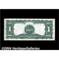 Fr. 236 $1 1899 Silver Certificate Very Choice New. A nice original Black Eagle that would grade Gem were it not for the skewed bottom margin, which comes a bit close at the left. <BR><BR><B>Important notice:</B> Heritage usually auctions material at the rate of 200-250 lots per hour. On some occasions eBay Live bid software or the Internet may not be able to keep up with the pace of the auction. We recommend placing a realistic absentee bid now as insurance to avoid disappointment. Occasionally the auctioneer may eliminate or reject an eBay Live bid, and the auctioneer may also reopen a lot after the close of the eBay live bidding (usually because we missed an audience bid), and may reject your bid even if it shows you as the winning bidder. By bidding via eBay Live, you agree that Heritage may award the lot to another bidder at its sole discretion under the circumstances described above or any other reasonable circumstances. Since eBay bids are not shown to us until we open the lot on the floor, we treat those bids just like floor bids. In most cases the floor responds before the eBay bid is presented to us, due to Internet lag time, so for consistency we have made it a policy that floor bids are always considered first over tie eBay live bids. Also please note that all Heritage lots purchased through eBay Live carry a 20% Buyer's Premium. Please make sure you read the Terms and Conditions before you bid. <BR><BR><B>IMPORTANT ANNOUNCEMENT ABOUT RESERVES:</B> Heritage now divulges all reserves on its web site 7 days before every auction. If you want to know whether the reserve on this lot has been met, and if not, what the reserve amount is, please visit this lot page on the HeritageCoin.com web site, or email: bid@HeritageGalleries.com