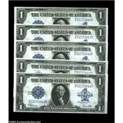 Fr. 237 $1 1923 Silver Certificate Choice About New. Five notes from the same short serial-number ru
