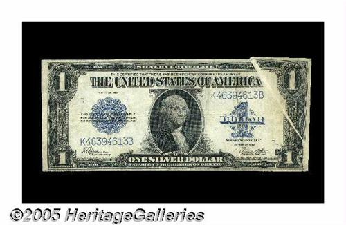 <B>Fr. 237 $1 1923 Silver Certificate Gutter Fold Very Fine</B></I> Although quite available in the various small size designs, gutter folds on their large size predecessors are fairly scarce and make a dramatic overall appearance, especially when they are as pronounced as on this example.