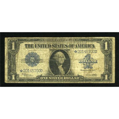 <B>Fr. 237 $1 1923 Silver Certificate Star Note Very Good.</B></I> This Star Note faces up quite well, though there are some minor pinholes and a split worthy of mention.<BR><BR><b>Shipping:</b> Coins & Currency (<a target="_blank" href="http://www.heritageauctions.com/common/shipping.php">view shipping information</a>)