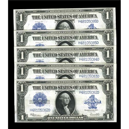 Fr. 237 $1 1923 Silver Certificates Five Consecutive Ex Fr. 237 $1 1923 Silver Certificates Five Con
