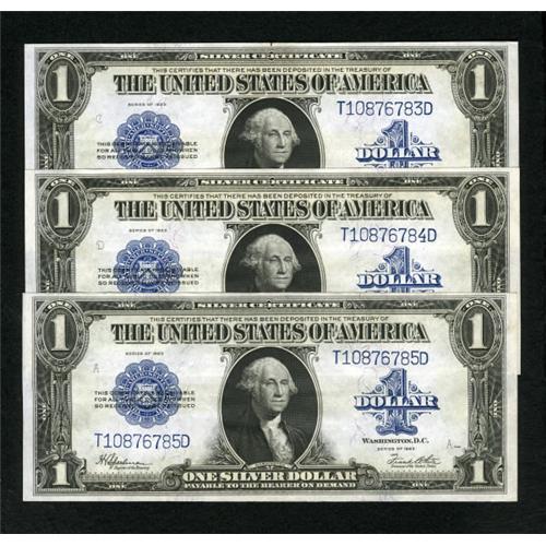 <B>Fr. 237 $1 1923 Silver Certificates Three Consecutive Examples Extremely Fine.</B></I> Plenty of original paper wave and prominent embossed are displayed by each note in this wonderful trio.<BR><BR><b>Shipping:</b> Coins & Currency (<a target="_blank" href="http://www.heritageauctions.com/common/shipping.php">view shipping information</a>)
