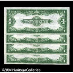 Fr. 238 $1 1923 Silver Certificates Cut Sheet of Four <B>Fr. 238 $1 1923 Silver Certificates Cut Sheet of Four Gem New.</B></I> A third consecutive cut sheet, with each note just as fresh as they day they were printed. 4 notes <BR><BR><B>Important notice:</B> Heritage usually auctions material at the rate of 200-250 lots per hour. On some occasions eBay Live bid software or the Internet may not be able to keep up with the pace of the auction. We recommend placing a realistic absentee bid now as insurance to avoid disappointment. Occasionally the auctioneer may eliminate or reject an eBay Live bid, and the auctioneer may also reopen a lot after the close of the eBay live bidding (usually because we missed an audience bid), and may reject your bid even if it shows you as the winning bidder. By bidding via eBay Live, you agree that Heritage may award the lot to another bidder at its sole discretion under the circumstances described above or any other reasonable circumstances. Since eBay bids are not shown to us until we open the lot on the floor, we treat those bids just like floor bids. In most cases the floor responds before the eBay bid is presented to us, due to Internet lag time, so for consistency we have made it a policy that floor bids are always considered first over tie eBay live bids. Also please note that all Heritage lots purchased through eBay Live carry a 20% Buyer's Premium. Please make sure you read the Terms and Conditions before you bid. This lot is being auctioned in conjunction with a live floor auction by Heritage Galleries & Auctioneers. All final auction and invoice information will be supplied by Heritage Galleries & Auctioneers, and all other information should be considered preliminary. Lot:17319