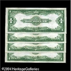 Fr. 238 $1 1923 Silver Certificates Cut Sheet of Four <B>Fr. 238 $1 1923 Silver Certificates Cut Sheet of Four Gem New.</B></I> This lovely cut sheet has outstanding eye appeal and great freshness. 4 notes <BR><BR><B>Important notice:</B> Heritage usually auctions material at the rate of 200-250 lots per hour. On some occasions eBay Live bid software or the Internet may not be able to keep up with the pace of the auction. We recommend placing a realistic absentee bid now as insurance to avoid disappointment. Occasionally the auctioneer may eliminate or reject an eBay Live bid, and the auctioneer may also reopen a lot after the close of the eBay live bidding (usually because we missed an audience bid), and may reject your bid even if it shows you as the winning bidder. By bidding via eBay Live, you agree that Heritage may award the lot to another bidder at its sole discretion under the circumstances described above or any other reasonable circumstances. Since eBay bids are not shown to us until we open the lot on the floor, we treat those bids just like floor bids. In most cases the floor responds before the eBay bid is presented to us, due to Internet lag time, so for consistency we have made it a policy that floor bids are always considered first over tie eBay live bids. Also please note that all Heritage lots purchased through eBay Live carry a 20% Buyer's Premium. Please make sure you read the Terms and Conditions before you bid. This lot is being auctioned in conjunction with a live floor auction by Heritage Galleries & Auctioneers. All final auction and invoice information will be supplied by Heritage Galleries & Auctioneers, and all other information should be considered preliminary. Lot:17333