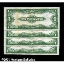 Fr. 238 $1 1923 Silver Certificates Cut Sheet of Four <B>Fr. 238 $1 1923 Silver Certificates Cut Sheet of Four Gem New.</B></I> The final cut sheet of four in this immaculate run of Fr. 238s, with each note as nice as the rest in this partial pack save for the last note, which has a tiny bit of discoloration on the back. 4 notes <BR><BR><B>Important notice:</B> Heritage usually auctions material at the rate of 200-250 lots per hour. On some occasions eBay Live bid software or the Internet may not be able to keep up with the pace of the auction. We recommend placing a realistic absentee bid now as insurance to avoid disappointment. Occasionally the auctioneer may eliminate or reject an eBay Live bid, and the auctioneer may also reopen a lot after the close of the eBay live bidding (usually because we missed an audience bid), and may reject your bid even if it shows you as the winning bidder. By bidding via eBay Live, you agree that Heritage may award the lot to another bidder at its sole discretion under the circumstances described above or any other reasonable circumstances. Since eBay bids are not shown to us until we open the lot on the floor, we treat those bids just like floor bids. In most cases the floor responds before the eBay bid is presented to us, due to Internet lag time, so for consistency we have made it a policy that floor bids are always considered first over tie eBay live bids. Also please note that all Heritage lots purchased through eBay Live carry a 20% Buyer's Premium. Please make sure you read the Terms and Conditions before you bid. This lot is being auctioned in conjunction with a live floor auction by Heritage Galleries & Auctioneers. All final auction and invoice information will be supplied by Heritage Galleries & Auctioneers, and all other information should be considered preliminary. Lot:17338