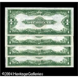 Fr. 238 $1 1923 Silver Certificates Cut Sheet of Four G <B>Fr. 238 $1 1923 Silver Certificates Cut Sheet of Four Gem New.</B></I> The first four notes in a wonderful partial original pack run of Silver Certificates, all of which are strictly original, crackling fresh, and possess unusually above average centering for this normally tight margined type for which nice margins were difficult to produce. This cut sheet is lovely with each note free of any mentionable defects. 4 notes <BR><BR><B>Important notice:</B> Heritage usually auctions material at the rate of 200-250 lots per hour. On some occasions eBay Live bid software or the Internet may not be able to keep up with the pace of the auction. We recommend placing a realistic absentee bid now as insurance to avoid disappointment. Occasionally the auctioneer may eliminate or reject an eBay Live bid, and the auctioneer may also reopen a lot after the close of the eBay live bidding (usually because we missed an audience bid), and may reject your bid even if it shows you as the winning bidder. By bidding via eBay Live, you agree that Heritage may award the lot to another bidder at its sole discretion under the circumstances described above or any other reasonable circumstances. Since eBay bids are not shown to us until we open the lot on the floor, we treat those bids just like floor bids. In most cases the floor responds before the eBay bid is presented to us, due to Internet lag time, so for consistency we have made it a policy that floor bids are always considered first over tie eBay live bids. Also please note that all Heritage lots purchased through eBay Live carry a 20% Buyer's Premium. Please make sure you read the Terms and Conditions before you bid. This lot is being auctioned in conjunction with a live floor auction by Heritage Galleries & Auctioneers. All final auction and invoice information will be supplied by Heritage Galleries & Auctioneers, and all other information should be considered preliminary. Lot:17317