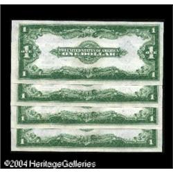 Fr. 238 $1 1923 Silver Certificates Cut Sheet of Four G <B>Fr. 238 $1 1923 Silver Certificates Cut Sheet of Four Gem New.</B></I> A second cut sheet from this consecutive run, this one equally as nice to the first and totally fresh and original. 4 notes <BR><BR><B>Important notice:</B> Heritage usually auctions material at the rate of 200-250 lots per hour. On some occasions eBay Live bid software or the Internet may not be able to keep up with the pace of the auction. We recommend placing a realistic absentee bid now as insurance to avoid disappointment. Occasionally the auctioneer may eliminate or reject an eBay Live bid, and the auctioneer may also reopen a lot after the close of the eBay live bidding (usually because we missed an audience bid), and may reject your bid even if it shows you as the winning bidder. By bidding via eBay Live, you agree that Heritage may award the lot to another bidder at its sole discretion under the circumstances described above or any other reasonable circumstances. Since eBay bids are not shown to us until we open the lot on the floor, we treat those bids just like floor bids. In most cases the floor responds before the eBay bid is presented to us, due to Internet lag time, so for consistency we have made it a policy that floor bids are always considered first over tie eBay live bids. Also please note that all Heritage lots purchased through eBay Live carry a 20% Buyer's Premium. Please make sure you read the Terms and Conditions before you bid. This lot is being auctioned in conjunction with a live floor auction by Heritage Galleries & Auctioneers. All final auction and invoice information will be supplied by Heritage Galleries & Auctioneers, and all other information should be considered preliminary. Lot:17318