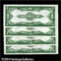 Fr. 238 $1 1923 Silver Certificates Cut Sheet of Four G <B>Fr. 238 $1 1923 Silver Certificates Cut Sheet of Four Gem New.</B></I> Each note in this cut sheet has nearly flawless centering. 4 notes <BR><BR><B>Important notice:</B> Heritage usually auctions material at the rate of 200-250 lots per hour. On some occasions eBay Live bid software or the Internet may not be able to keep up with the pace of the auction. We recommend placing a realistic absentee bid now as insurance to avoid disappointment. Occasionally the auctioneer may eliminate or reject an eBay Live bid, and the auctioneer may also reopen a lot after the close of the eBay live bidding (usually because we missed an audience bid), and may reject your bid even if it shows you as the winning bidder. By bidding via eBay Live, you agree that Heritage may award the lot to another bidder at its sole discretion under the circumstances described above or any other reasonable circumstances. Since eBay bids are not shown to us until we open the lot on the floor, we treat those bids just like floor bids. In most cases the floor responds before the eBay bid is presented to us, due to Internet lag time, so for consistency we have made it a policy that floor bids are always considered first over tie eBay live bids. Also please note that all Heritage lots purchased through eBay Live carry a 20% Buyer's Premium. Please make sure you read the Terms and Conditions before you bid. This lot is being auctioned in conjunction with a live floor auction by Heritage Galleries & Auctioneers. All final auction and invoice information will be supplied by Heritage Galleries & Auctioneers, and all other information should be considered preliminary. Lot:17325