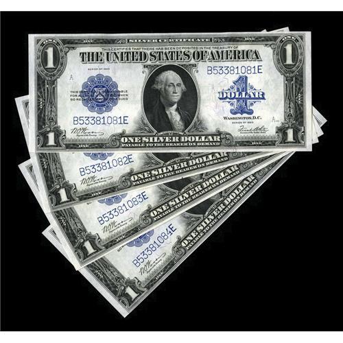 <B>Fr. 238 $1 1923 Silver Certificates Cut Sheet of Four Choice New.</B></I> This cut sheet crackles with originality, paper wave, and freshness. The B-E block was the final regular block for large size $1 Silvers.<BR><BR><b>Shipping:</b> Coins & Currency (<a target="_blank" href="http://www.heritageauctions.com/common/shipping.php">view shipping information</a>)