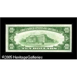 <B>Fr. 2400 $10 1928 Gold Certificate. Choice New.</B></I><BR>An obstruction has prevented the upper left corner of the face from printing. All Gold Certificate errors are scarce, and this one, while it would not be significant in most series, is important for this type. Lot:15363