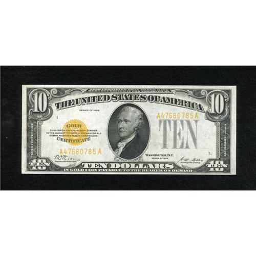 Fr. 2400 $10 1928 Gold Certificate. Extremely Fi