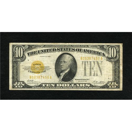 Fr. 2400 $10 1928 Gold Certificate. Fine-Very Fi