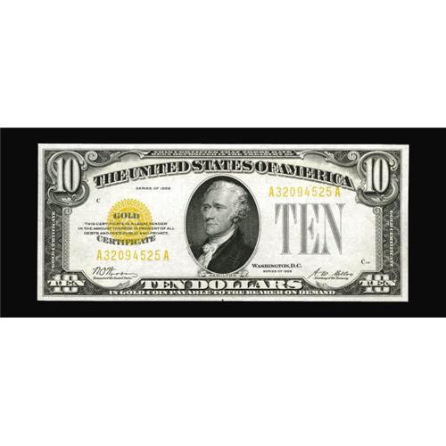 <B>Fr. 2400 $10 1928 Gold Certificate. Gem Crisp Uncirculated.</B></I><BR>A perfectly bright and nicely centered example that some might argue should be called superb.