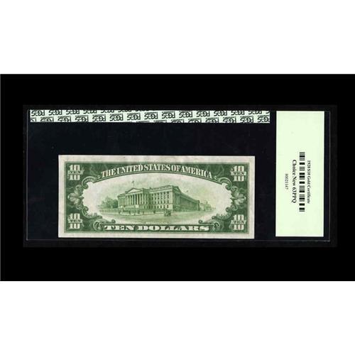 <B>Fr. 2400 $10 1928 Gold Certificate. PCGS Choice New 63PPQ.</B></I><BR>It is difficult to discern through the encapsulation surfaces what minor factor kept this lovely note from receiving the imprimatur as a full Gem.