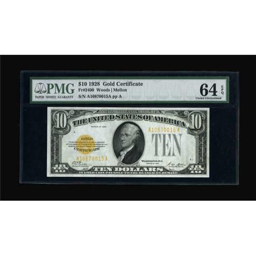 Fr. 2400 $10 1928 Gold Certificate. PMG Choice