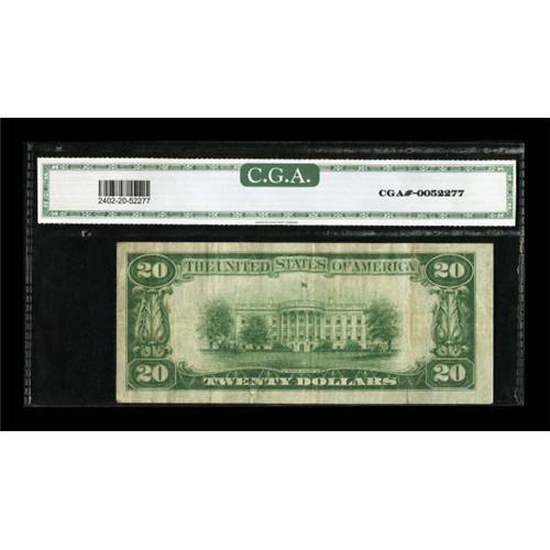 <B>Fr. 2402* $20 1928 Gold Certificate. CGA Very Fine 20.</B></I><BR> A pleasing mid-grade note that boasts a strong overprint.<BR><BR><b>Shipping:</b> Coins & Currency (<a target="_blank" href="http://www.heritageauctions.com/common/shipping.php">view shipping information</a>)