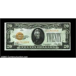 Fr. 2402 $20 1928 Gold Certificate. Choice Crisp Uncirculated.Exceptionally vivid colors and very close to the gem grade. Important notice: We expect to be auctioning lots at the rate of 200-250 per hour. Sometimes eBay Premier live bid software cannot keep up with that pace, so we strongly recommend that you place a realistic proxy bid now as insurance to avoid disappointment. Also please note that all Heritage/CAA lots purchased through eBay Premier carry a 20% Buyer's Premium. Please make sure you read the Terms and Conditions.