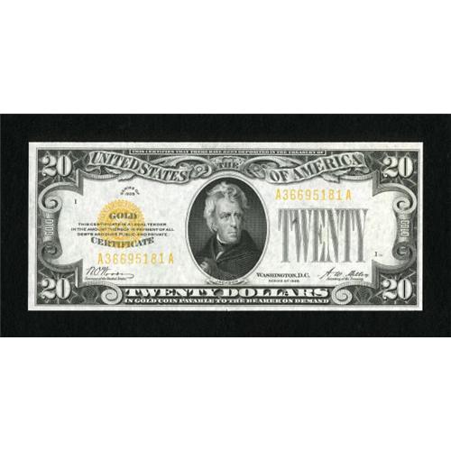 <B>Fr. 2402 $20 1928 Gold Certificate. Extremely Fine.</B></I><BR> Three light folds are found on this gold certificate that exhibits flat surfaces.<BR><BR><b>Shipping:</b> Coins & Currency (<a target="_blank" href="http://www.heritageauctions.com/common/shipping.php">view shipping information</a>)