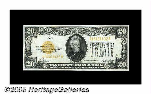 <B>Fr. 2402 $20 1928 Gold Certificate. Gem Crisp Uncirculated.</B></I><BR>The last of this lovely group. This example has a miniscule paper inclusion that is barely visible.
