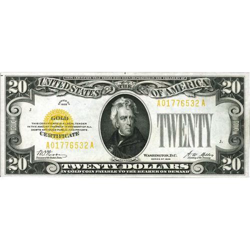 <B>Fr. 2402 $20 1928 Gold Certificate. Gem Crisp Uncirculated.</B></I><BR>A well centered crackling fresh gem.