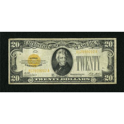 <B>Fr. 2402 $20 1928 Gold Certificate. Very Good-Fine.</B></I><BR> This is a nice representative for the grade.<BR><BR><b>Shipping:</b> Coins & Currency (<a target="_blank" href="http://www.heritageauctions.com/common/shipping.php">view shipping information</a>)
