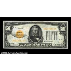 Fr. 2404 $50 1928 Gold Certificate. About Uncirculated.A bright and well printed example that has considerable claim to the full Uncirculated grade. Important notice: We expect to be auctioning lots at the rate of 200-250 per hour. Sometimes eBay Premier live bid software cannot keep up with that pace, so we strongly recommend that you place a realistic proxy bid now as insurance to avoid disappointment. Also please note that all Heritage/CAA lots purchased through eBay Premier carry a 20% Buyer's Premium. Please make sure you read the Terms and Conditions.