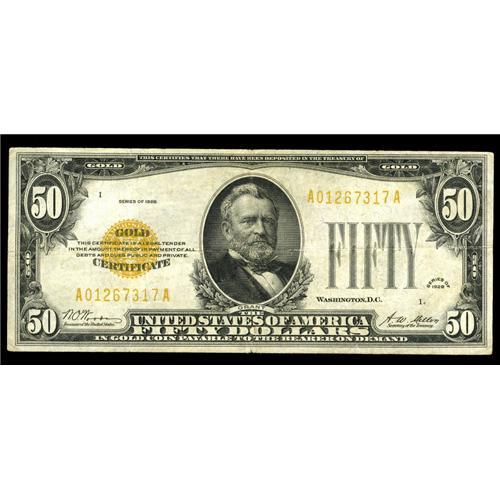 Fr. 2404 $50 1928 Gold Certificate. Very Fine. This is Fr. 2404 $50 1928 Gold Certificate. Very Fine