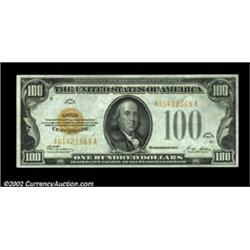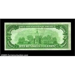 Fr. 2405 $100 1928 Gold Certificate. About Uncirculated.There is a barely discernable center fold which keeps this note from an even higher grade. Important notice: We expect to be auctioning lots at the rate of 200-250 per hour. Sometimes eBay Premier live bid software cannot keep up with that pace, so we strongly recommend that you place a realistic proxy bid now as insurance to avoid disappointment. Also please note that all Heritage/CAA lots purchased through eBay Premier carry a 20% Buyer's Premium. Please make sure you read the Terms and Conditions.