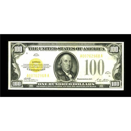 <B>Fr. 2405 $100 1928 Gold Certificate. Extremely Fine.</B></I><BR>An attractive high end $100 Gold, a note which is very difficult to obtain in this grade.<BR><BR><b>Shipping:</b> Coins & Currency (<a target="_blank" href="http://www.heritageauctions.com/common/shipping.php">view shipping information</a>)
