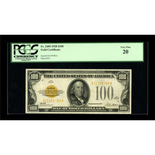 Fr. 2405 $100 1928 Gold Certificate. PCGS Very