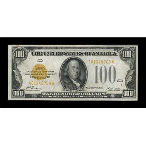 <B>Fr. 2405 $100 1928 Gold Certificate. Very Fine.</B></I><BR> Bright paper and a perfectly bright overprint are noted on this popular gold certificate denomination.<BR><I>From The Drew Keough Collection</B></I><BR><BR><b>Shipping:</b> Coins & Currency (<a target="_blank" href="http://www.heritageauctions.com/common/shipping.php">view shipping information</a>)