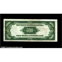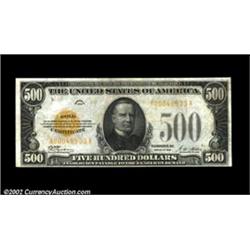 Fr. 2407 $500 1928 Gold Certificate. Very Fine-Extremely Fine.An attractive example with nice bright colors which comes very close to the Extremely Fine grade. There are a few closed pinholes typically found on these high denomination pieces, but this high end circulated piece will fit nicely into any better grade set. Important notice: We expect to be auctioning lots at the rate of 200-250 per hour. Sometimes eBay Premier live bid software cannot keep up with that pace, so we strongly recommend that you place a realistic proxy bid now as insurance to avoid disappointment. Also please note that all Heritage/CAA lots purchased through eBay Premier carry a 20% Buyer's Premium. Please make sure you read the Terms and Conditions.